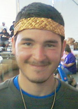 Jeremey (Native Bridge Youth), proudly wears his headband he wove during the Canoe Journey)
